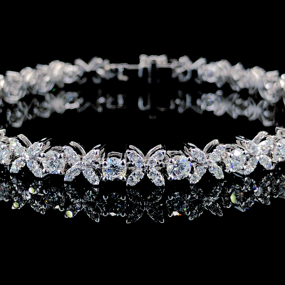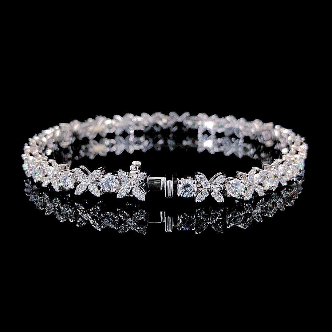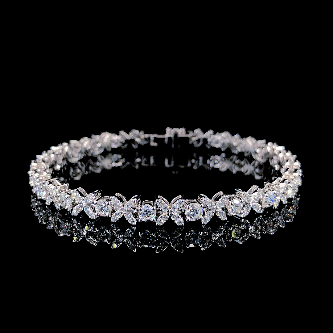 The ModernMuse Bracelet is more than a jewel—it’s a reflection of strength, grace, and modern sophistication. Crafted with a seamless flow of marquise and round-cut stones arranged in delicate floral patterns, it radiates both femininity and power. Designed for the muse of today, this bracelet is the perfect balance of timeless artistry and contemporary allure, making it an essential piece for every luxury collection.