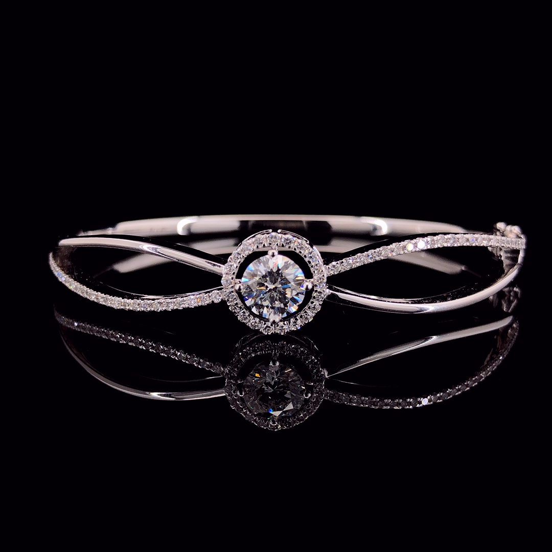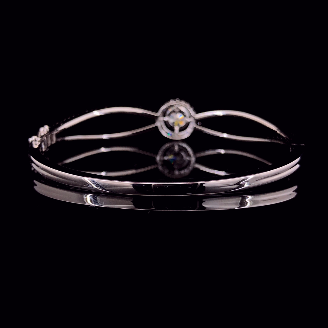 The Starlit Halo™ Bracelet is an emblem of celestial beauty, inspired by the sparkling rhythm of stars across the night sky. With a radiant round-cut center stone encircled by a delicate halo and elegantly curved bands studded with pavé stones, this piece shines with understated luxury and cosmic allure. Crafted for the dreamer and the achiever, it’s an unforgettable fusion of modern design and timeless wonder.
